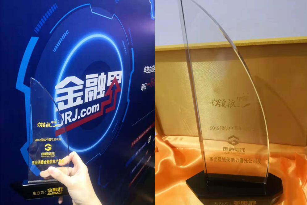 12月5日,第四届智能金融国际论坛暨金融界“领航中国”年度盛典在北京举行,国通信托公司凭借稳健的经营能力、卓越的创新能力及强大的区域影响力,成功荣获“2019领航中国年度评选杰出消费金融信托产品奖”和“2019领航中国年度评选杰出区域影响力信托公司奖”。