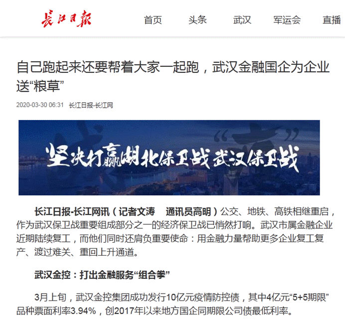 公交、地铁、高铁相继重启,作为武汉保卫战重要组成部分之一的经济保卫战已悄然打响。武汉市属金融企业近期陆续复工,而他们同时还肩负重要使命:用金融力量帮助更多企业复工复产、渡过难关、重回上升通道。