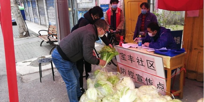 3月6日一早,社区工作者和突击队员们又有条不紊地开展蔬菜分发工作,当日上午第一批蔬菜分发工作顺利完成。从石首南口蔬菜地到国通信托突击队、志愿者服务队及社区工作者,再到宝丰街居民,这一棵棵蔬菜传递的是爱心与温暖。