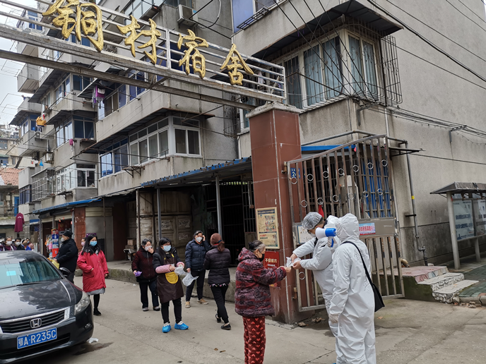 2月12日,根据对口支援的硚口区长丰街天勤花园社区安排,集团旗下长资公司党员抗疫突击队5名队员深入铜材厂丶机修厂宿舍,宣传最新防疫政策、发放消毒用品。