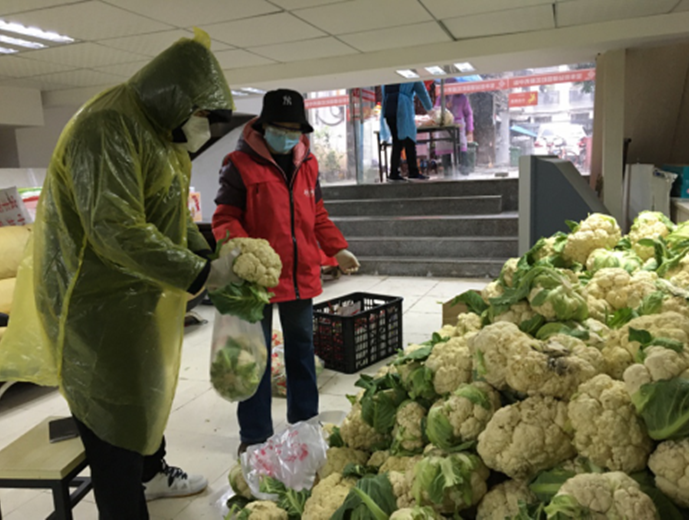 连日来受疫情和天气的双重影响,社区的居民们面临着吃菜难、出行难等问题。在社区的协调下,队员们主动承担为居民采购、搬运、派发物资的工作,有的帮老人采购药品,有的帮居民拿快递、拿外卖。