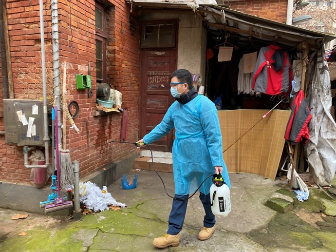 硚口区韩家墩街和江汉区北湖街的社区确诊病例和发热门栋较多,日常防护和社区清理消毒工作任务重大。突击队员们勇于担当作为,佩戴金控集团突击队袖章,按照街道社区安排,积极开展门口执勤、检测体温、消毒防护、帮扶老人、运输物资等工作。