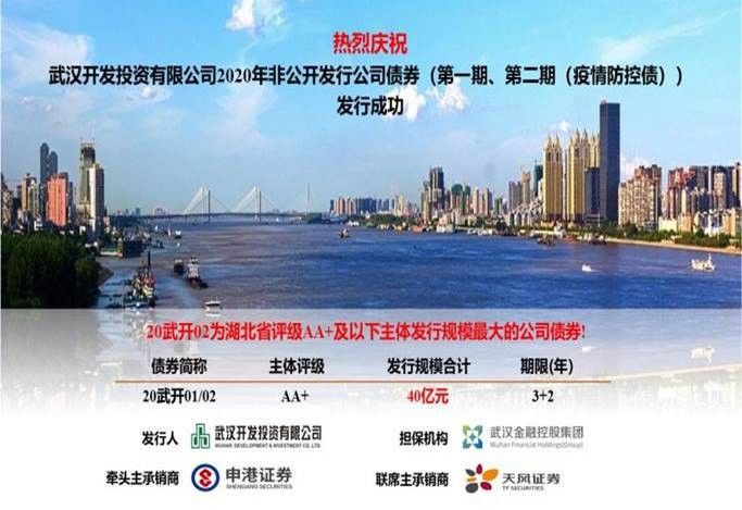 6月12日,开发投资公司2020年非公开发行公司债券(第二期)成功发行,规模25.6亿元,加上4月27日第一期14.4亿元,本次非公开发行40亿元公司债券(疫情防控债)全部发行成功。
