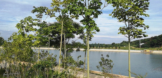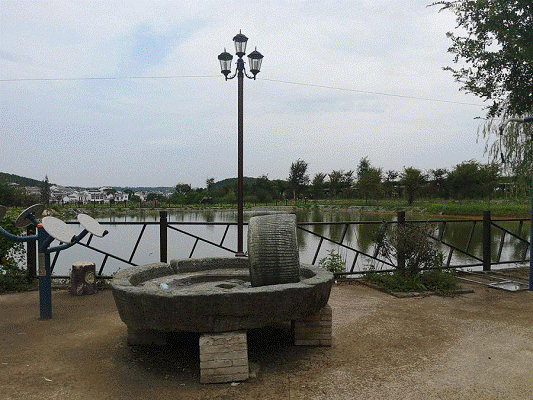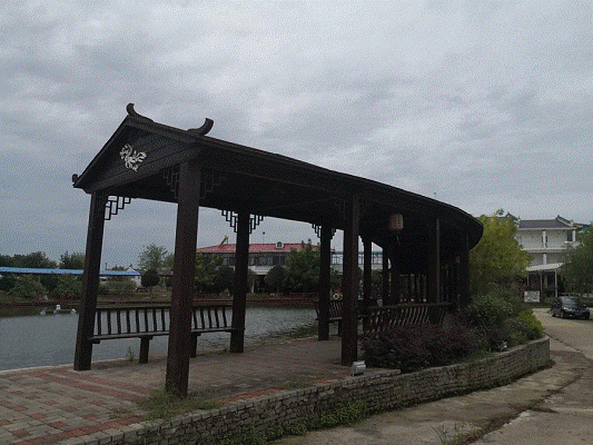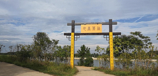 沿着8米宽的水泥路一路前行800米左右,穿过古色古香“油茶基地”木院门,一个大型水塘呈现眼前。