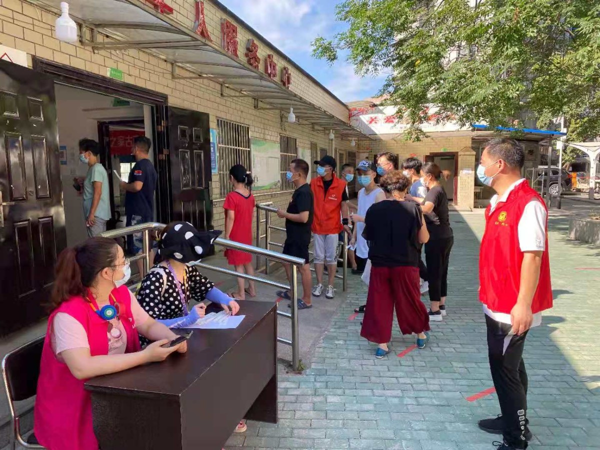 8月4日上午,17个下沉服务队党员干部按照统一安排,迅速到达17个社区指定核酸检测点,引导小区居民排队候检,协助社区维护现场秩序。