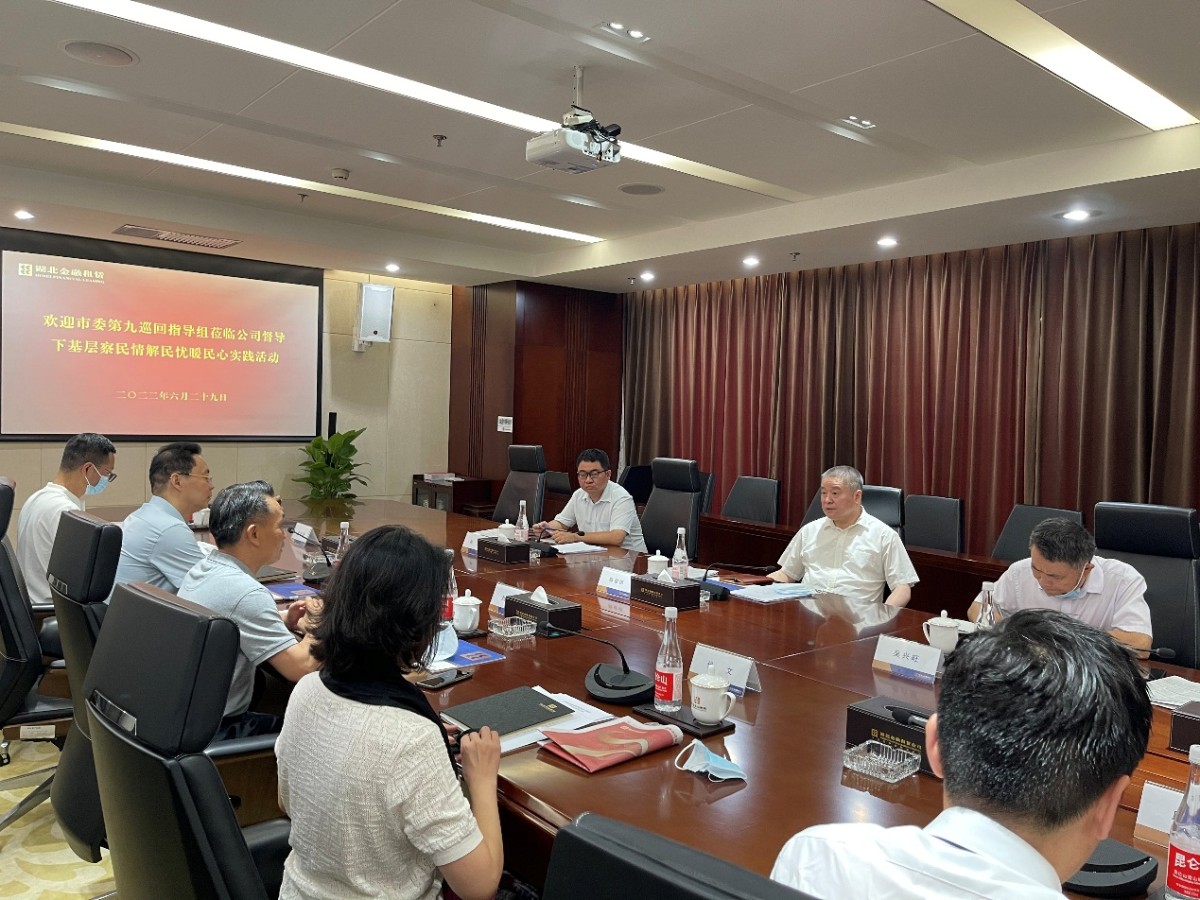 6月27日、29日,市委第九巡回指导组组长陈祖信一行分别前往集团下属国通信托、湖北金租公司,调研指导集团党员干部下基层察民情解民忧暖民心实践活动开展情况,重点了解集团领导在基层联系点调研和帮扶情况、“三张清单”收集情况、查看相关资料台账等。
