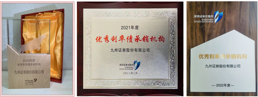 年度债券监管发展业务座谈会评选的“优秀利率债承销机构”奖项是中国债券市场具有较高关注度和公信力的重要奖项。九州证券获得该荣誉,充分体现了公司在深交所利率债市场的综合承销实力。