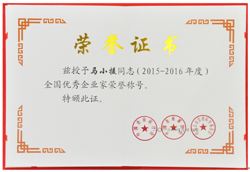 根据中国企业联合会、中国企业家协会、中国企业管理科学基金会《关于表彰2015―2016年度全国优秀企业家的决定》(中国企联[2016]7号),集团公司董事长、党委书记马小援荣获“2015-2016全国优秀企业家”荣誉称号!