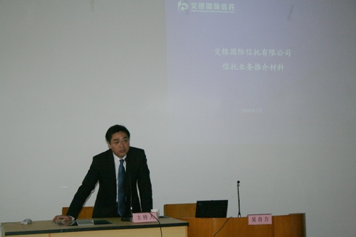 2008年3月13日,资深投资银行家、交银国际信托有限公司信托业务总监吴自力应邀到集团作信托业务专题讲座。