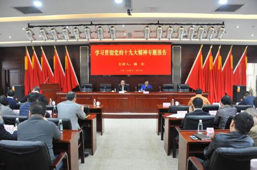 施红教授的宣传报告,题为《新时代新思想新征程――学习十九大精神专题宣讲报告》,从“新的历史方位和目标”“新的矛盾和问题”“新的思想和基本方略”“新的重要任务”四个方面深入浅出地介绍了党的十九大的主要内容,全面系统地阐述了党的十九大的重大意义、核心要义和丰富内涵。她强调,十八大以来,党和国家取得了全方位的、开创性的历史性成就和深层次、根本性的变革,中国人民实现了从站起来、富起来到强起来的历史性飞跃,最根本的在于有习近平总书记这个坚强领导核心为全党掌舵,在任何时候、任何情况下我们都必须坚决维护以习近平同志为核心的党中央权威和集中统一领导。她指出,党的十九大胜利召开,标志着中国特色社会主义进入新时代,形成了习近平新时代中国特色社会主义思想,十九大对我国社会主要矛盾作出了新的重要判断,对实现“两个一百年”目标、全面建成社会主义现代化强国作出了新的战略安排。这些新理论、新判断、新战略、新目标具有重大的政治意义、理论意义和实践意义。